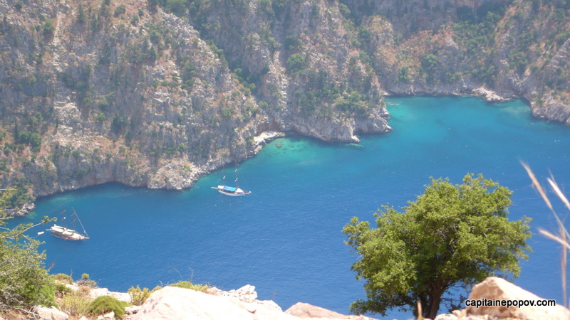 Il en était ainsi de Kabak, petite bourgade nichée sur les montagnes bordant la mer, au bout de la route qui s'arrête là. Une route de 25 kilomètres dont les deux derniers ne sont praticables qu'avec un véhicule tout terrain et qui aboutit au pied de la montagne dans une baie turquoise de la Méditerrané. Là nichait au flanc de la montagne le centre Shambala. Des petites cabanes hyper confortables, musique loungy, ambiance « babacool », festin santé absolument délectable, à peine une petite heure de navigation sur une minuscule barque de pêche pour se rendre à la Vallée des Papillons : on a décrète que c'était le paradis pour deux jours!